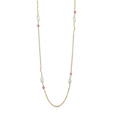Halskæde Med Natursten Og Perler - 24K Guldbelagt, Pink