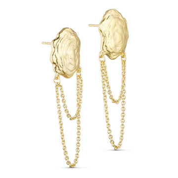 Under havets glimtrende overflade skaber vand og sand i bevægelse de smukkeste former og skatte. Inspireret af disse blev vores magiske Esther serie til. Serien blev introduceret i vores SS 25 kollektion, og det er her, at du finder disse fortryllende Esther statement øreringe, besmykket med glødende kæder.