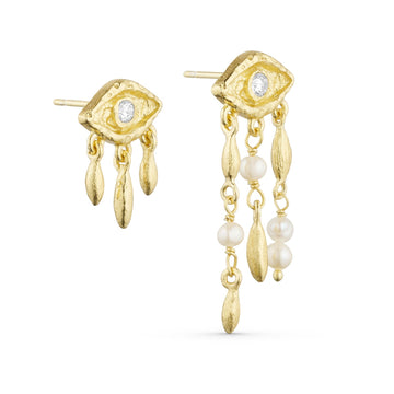 I midten af det betagende øje finder du den fineste zirkon, som skinner i smuk harmoni med ørestikkerens glødende overflade. Under ørestikkeren finder du delikate vedhæng og ægte ferskvandsperler, som giver smykket en hel særlig unik dimension.