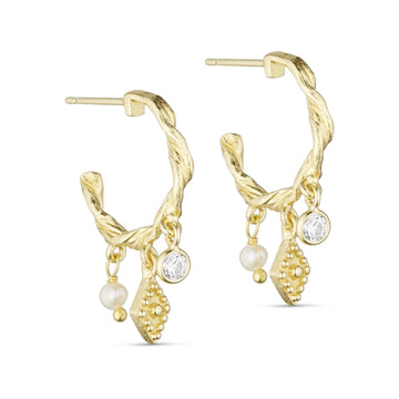 Disse snoede Hailey hoops er et legende design, hvis vedhæng tilføjer masser af bevægelse og et unikt blikfang. Blandt vedhængene finder du blandt andet en ægte ferskvandsperle og en smuk zirkon.