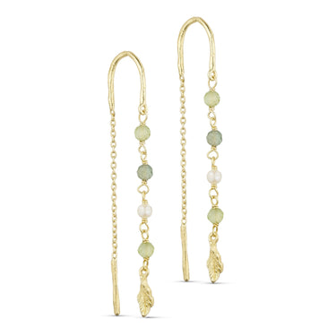 På øreringen finder du de fineste kæder, som elegant er besmykket med ferskvandsperler og de ægte natursten, prehnit, peridot og grøn apatit.