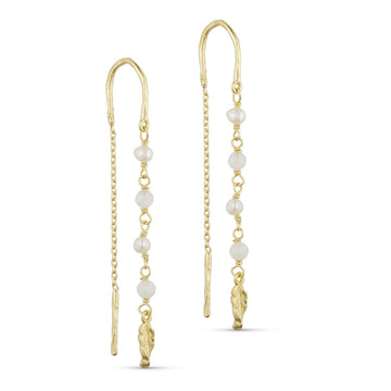 På øreringen finder du de fineste kæder, som elegant er besmykket med perlemor, ferskvandsperler og de ægte natursten, peach månesten, smoky kvarts og solsten.