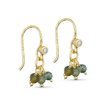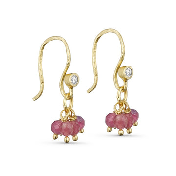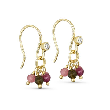 Den gyldne ørering har vores lækre børstede finish som smukt harmonerer med den lille klare zirkon. Derunder finder du den smukke natursten, pink turmalin, som skinner subtilt ved siden af det glødende guld. Pink turmalin er kendt for sin evne til at fremme kærlighed, medfølelse og følelsesmæssig healing, hvilket gør disse øreringe til en meningsfuld gave eller blot til et stilfuldt smykke til enhver lejlighed.