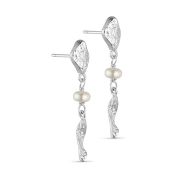 Vores Lina posts et roligt design, som er besmykket med ægte hvide ferskvandsperler og et snoet vedhæng.