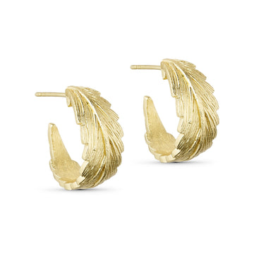 På mange måder er disse øreringe et smykke fyldt med kontraster, trods det simple og stilrene design. Det børstede Linn blad er feminint og simpelt. Men som det får lov til at vokse og lade sig omfavne dit øre, skabes et cool og edgy udtryk.