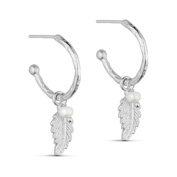 Den enkle hoop er besmykket med det detaljerede Linn blad, som har vores elskede børstede finish. Ved siden af de fine blad finder du en ægte ferskvandsperle. Takket være naturen har hver perle helt unikke detaljer og nuancer.