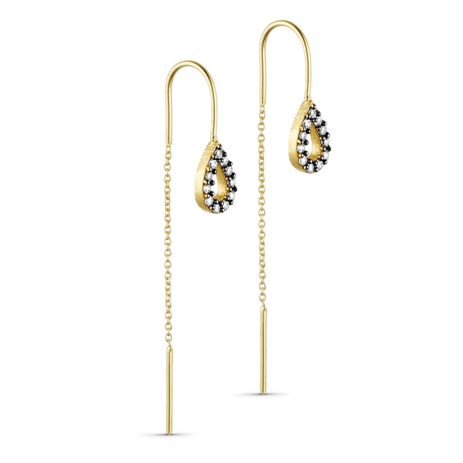 Øreringene er designet med det smukke dråbeformet vedhæng, der prydet med strålende zirkoner i oxiderede greb. Zirkonerne fanger lyset og tilføjer en fortryllende glans til smykket.