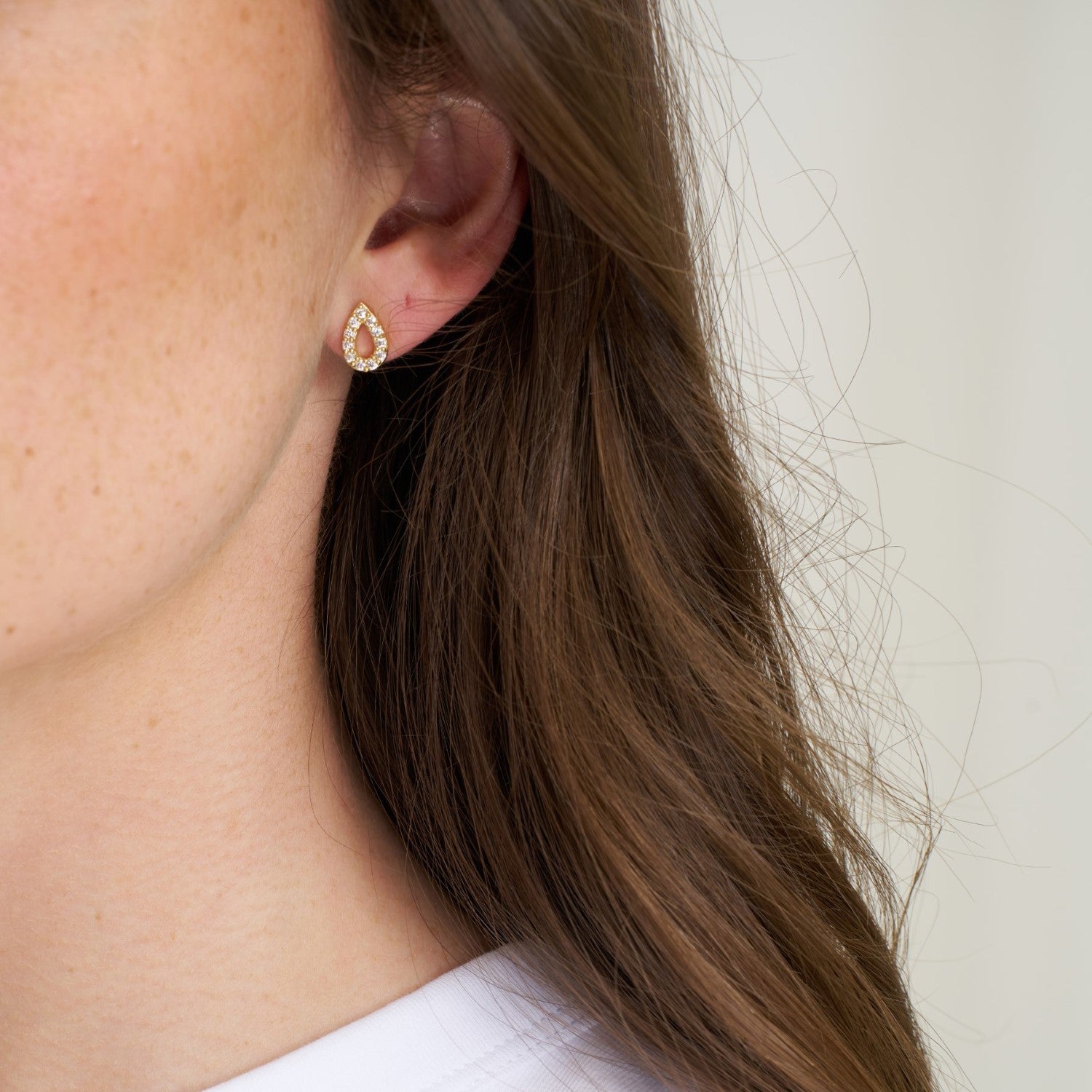 Vores Maya posts er designet med den smukke dråbeform, der besmykket med strålende zirkoner. Zirkonerne fanger lyset og tilføjer en fortryllende glans til smykket.