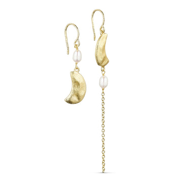 Du finder på begge øreringe en ægte ferskvandsperle, med unikke detaljer fra naturen.