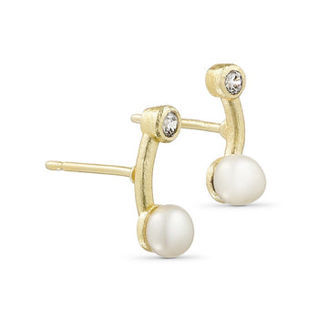 Øreringens børstede greb giver den ægte ferskvandsperle plads til at gløde og zirkonen plads til at skinne - det er svært ikke at elske dette design.