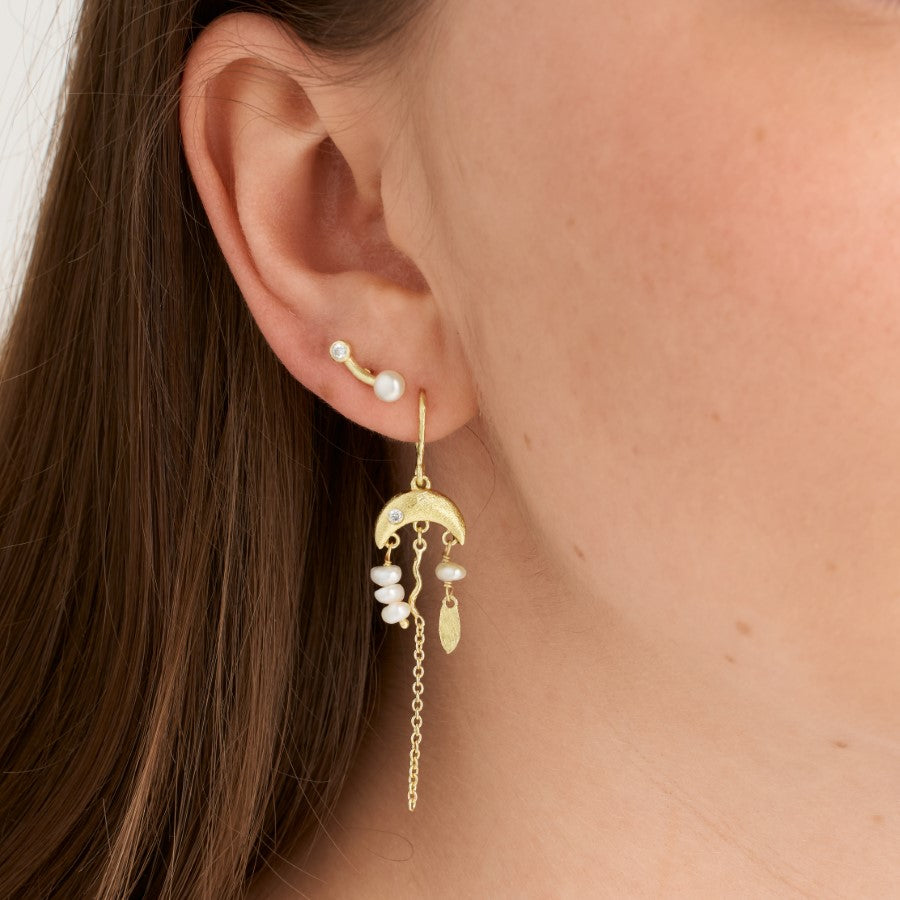 Ørering Med Zirkon Og Perle - 24K Guldbelagt