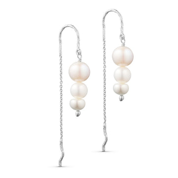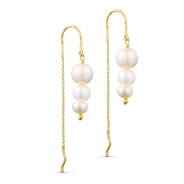 Øreringene er besmykket med tre ægte ferskvandsperler og er enten belagt med sølv eller 24K guld.