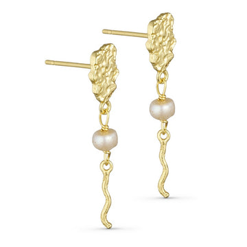 Disse unikke øreringe er beklædt med et råt foil finish, smukke natursten og ægte ferskvandsperler.
