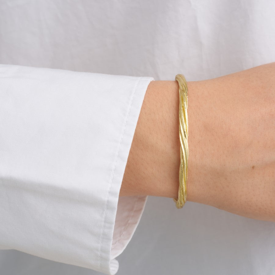 Dieses wunderschöne, gedrehte Armreifdesign besticht durch seine Struktur und seinen Ausdruck.