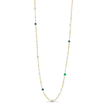 Halskette mit Perlen und Natursteinen – 24 Karat vergoldet, Grün