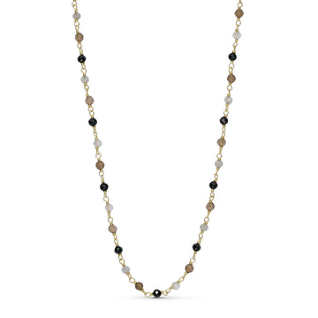 Auf diesem Schmuckstück finden sich die Natursteine Rauchquarz, Schwarzer Spinell und Labradorit.