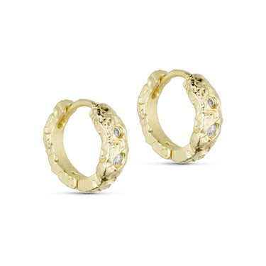 Der Ohrring hat eine gehämmerte Oberfläche, die den Glanz des Zirkons wunderbar ergänzt.
