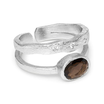 Der edle Silvia-Ring ist ein zauberhaftes Design, das den bezaubernden Geschöpfen der Natur huldigt. Der Ring besticht durch den skurrilen Naturstein Rauchquarz und schimmernde Zirkone.