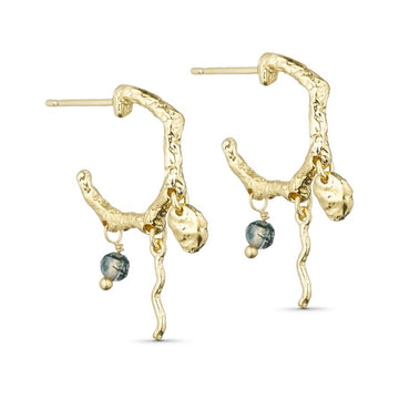 These Andrea earrings are adorned with the natural stone moss agate, which is said to be a supportive stone. In addition, the stone has the most beautiful green color, which harmonizes beautifully with the glowing gold.
