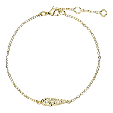 This Iris bracelet features a small pendant that creates a unique balance between the glow of the pendant's pounded surface and the sharp shine of the zircons.