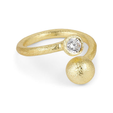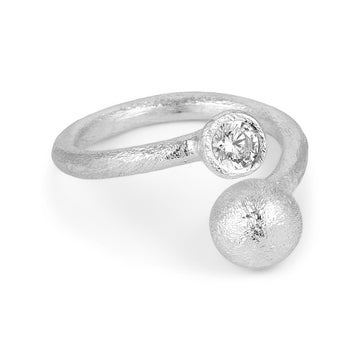 The ring and ball have a brushed finish, which balances beautifully with the natural shine of the zircons.