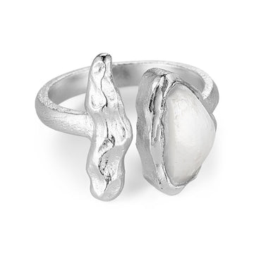 This ring exudes edge and elegance, which with its hammered finish harmonizes beautifully with the genuine freshwater pearl.