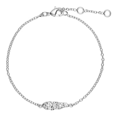 This Iris bracelet features a small pendant that creates a unique balance between the glow of the pendant's pounded surface and the sharp shine of the zircons.