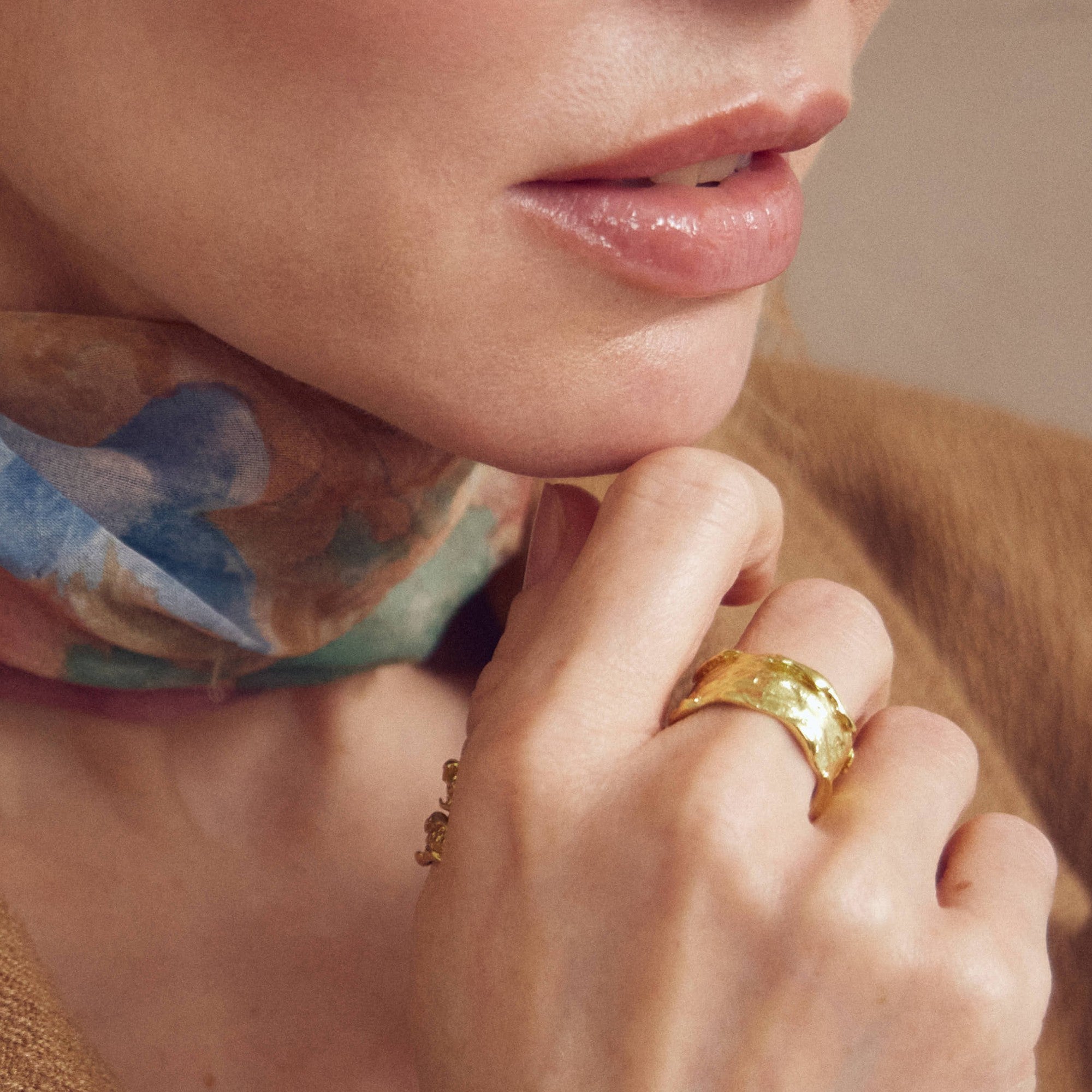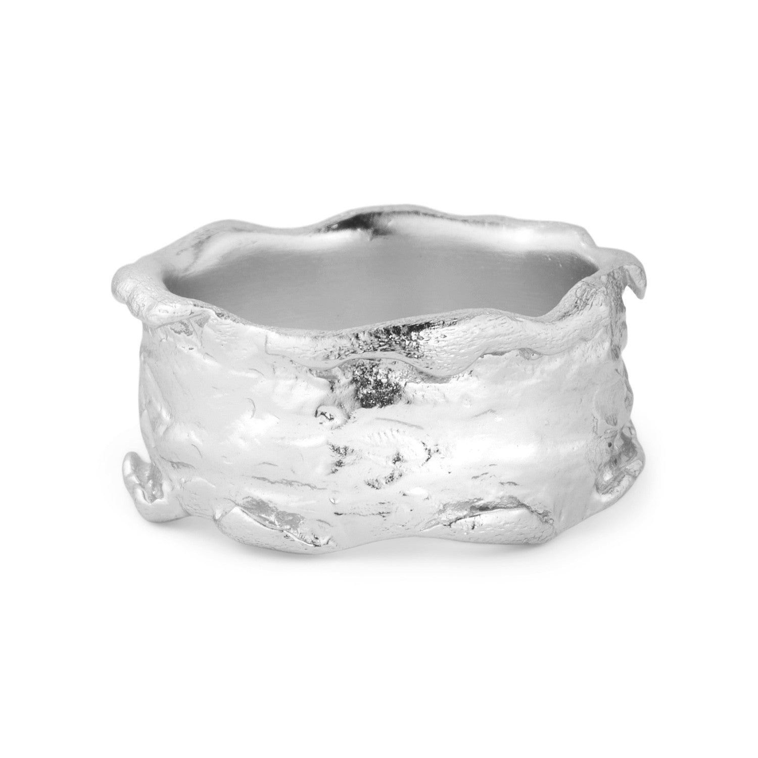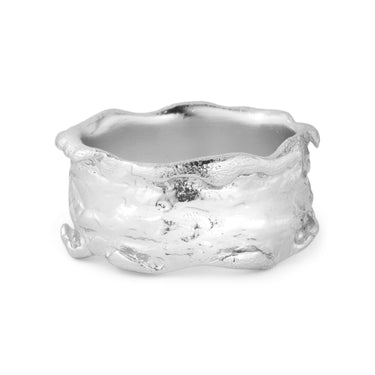 Den brede Delilah ring er på en og samme tid et feminint og råt design, hvis former og glød skaber et stærkt udtryk.