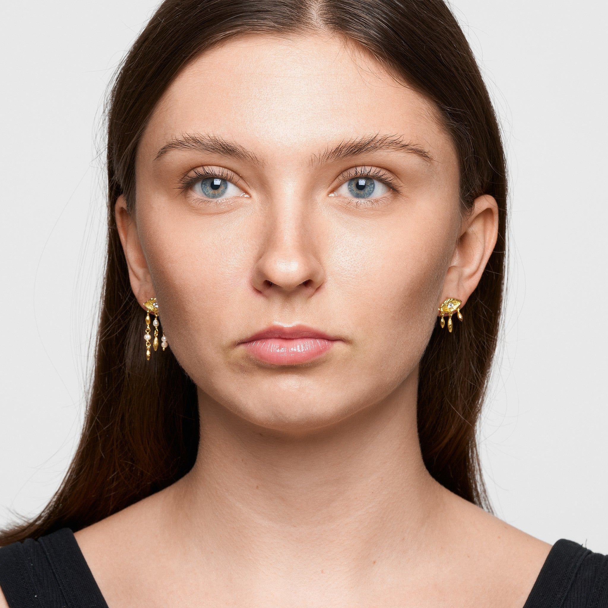Pynt dig selv med vores asymmetriske Evelyn øreringe, hvis raffinerede design emmer af mystik.