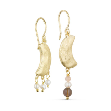 Under det unikke månevedhæng finder du en ægte ferskvandsperle, samt de ægte natursten, peach månesten og smoky kvarts.